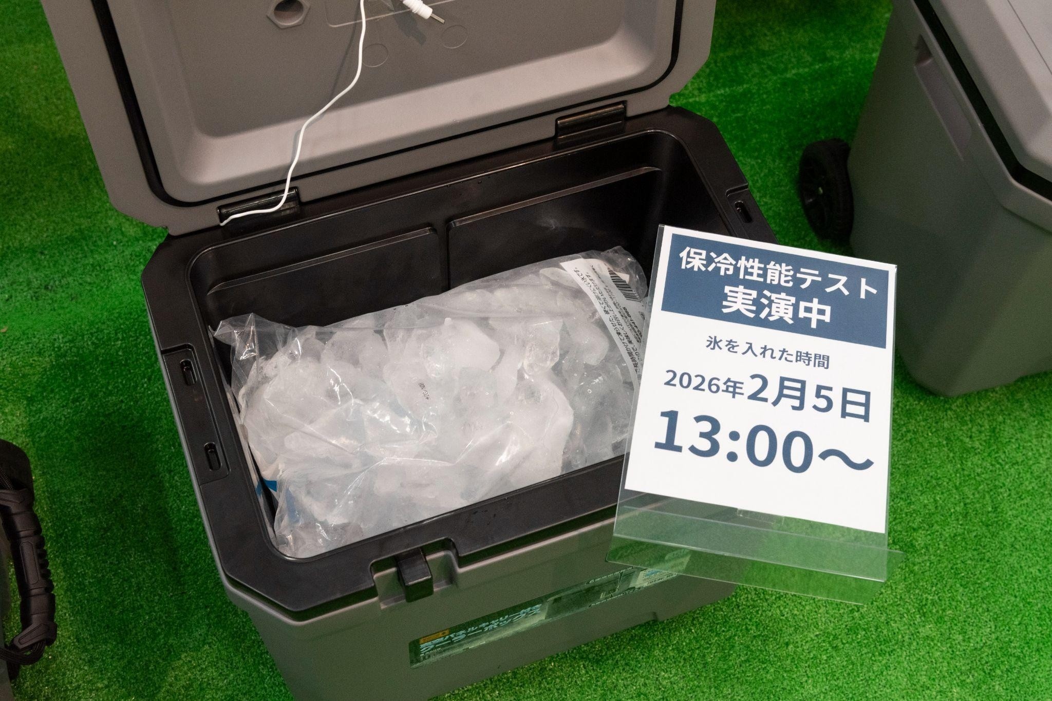 気になる実力ですが、上の写真をご覧ください。撮影日は2026年2月6日15時ごろ。丸一日、クーラーボックスに入っていたにもかかわらず、氷はほぼ溶けておらず、高い保冷力を見せています。