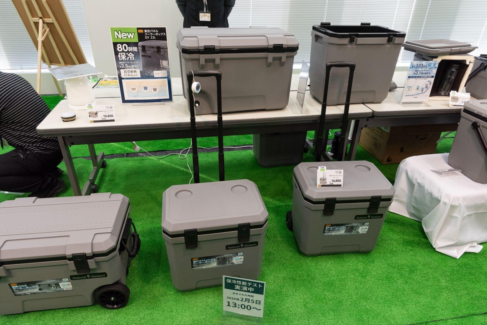 保冷時間は約80時間。一般家庭の冷蔵庫に使われている真空パネルと同じ仕様を採用。通常のクーラーボックスの約2.5倍の保冷力を実現。今回新色のグレーが登場。