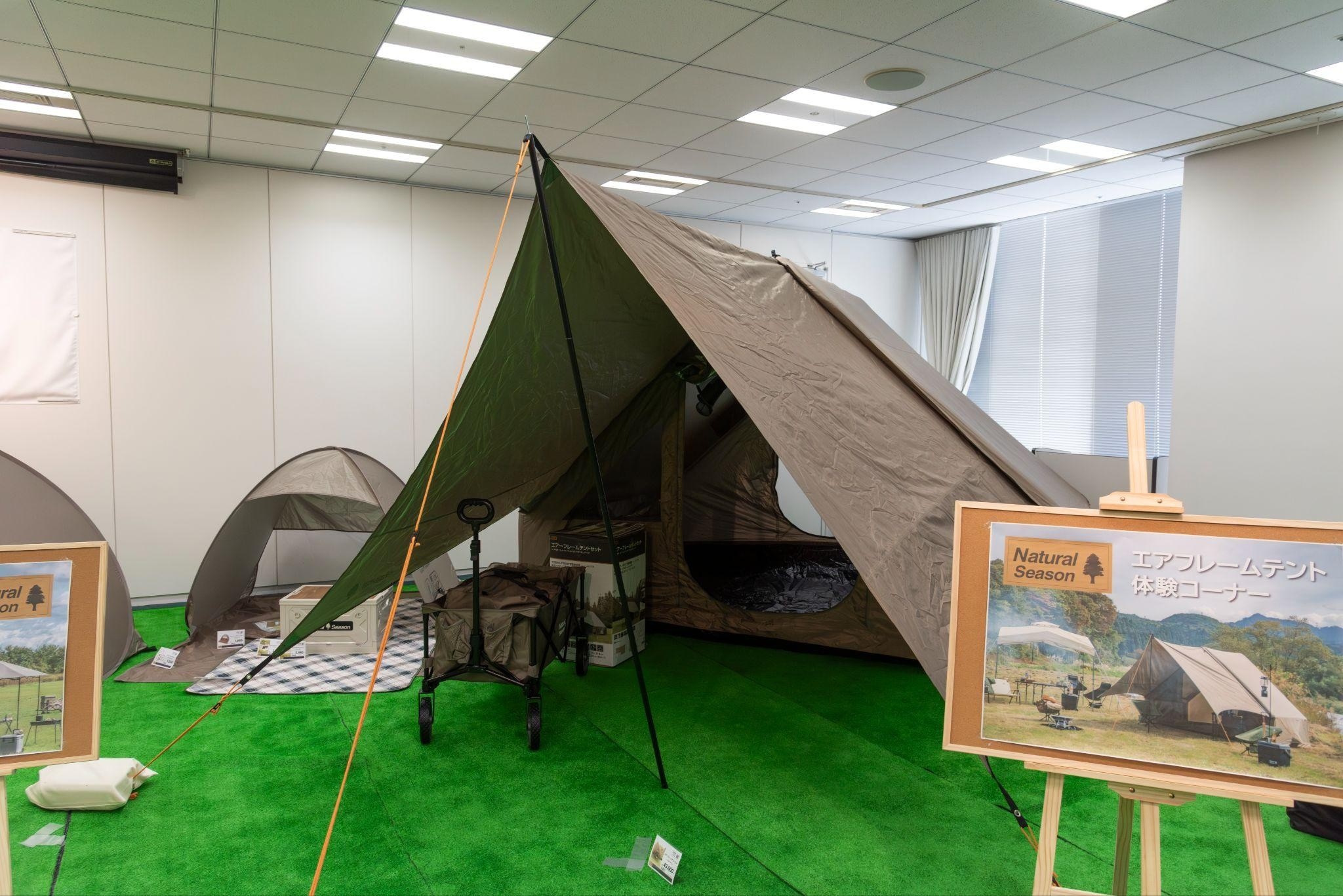 初心者に強い味方!設営時間たった2分のタープつきテント|Natural Seasonエアーフレーム タープ付きテントセット
