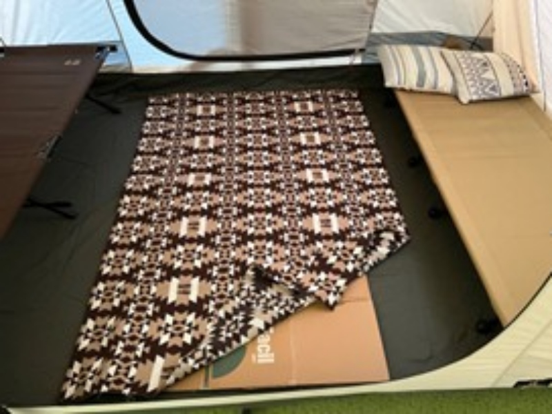 注意点としては、地面に直接ダンボールを敷くと湿気でダンボールがふにゃふにゃになってしまい悲惨な事になります。インナーテントの中に敷きましょう!