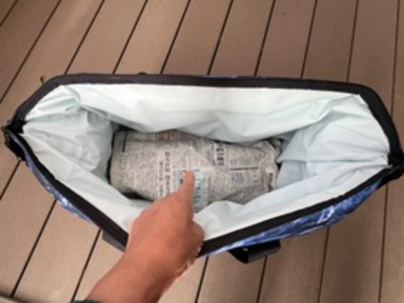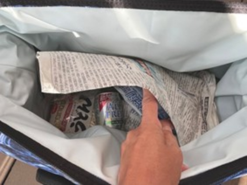 そんな時は新聞の朝刊分そのままを、ばさっと上から被せてみてください。クーラーボックス内の容積を減らすイメージです。これまでの経験から、朝刊の量がちょうど良い感じです。